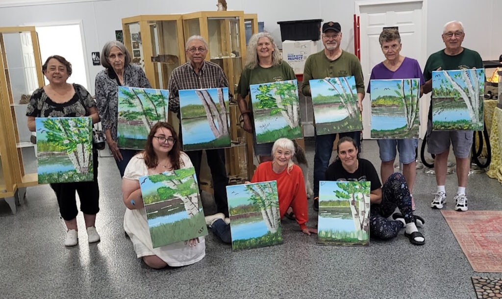 “Painting with Peggy” grew out of a simple idea. Peggy has always loved to paint, and like everything at Red Creek, she also loves to teach. After watching countless Bob Ross programs over the years, she wondered if she could guide a group through a painting in just a few hours. A private trial class with our staff and volunteers was a huge success, and everyone asked for more.