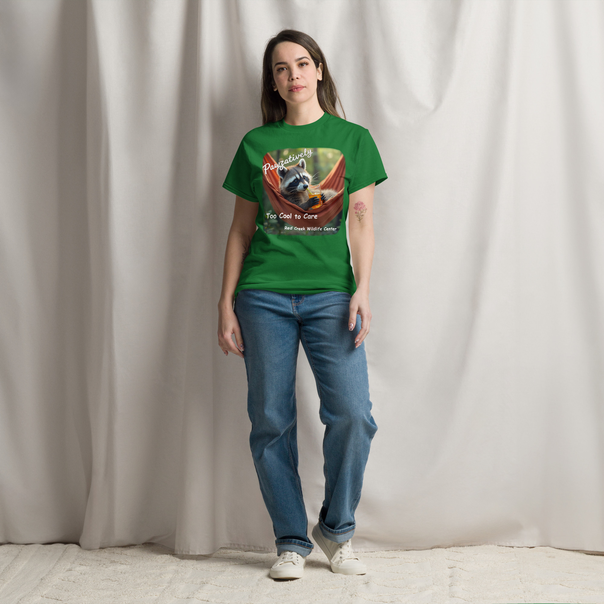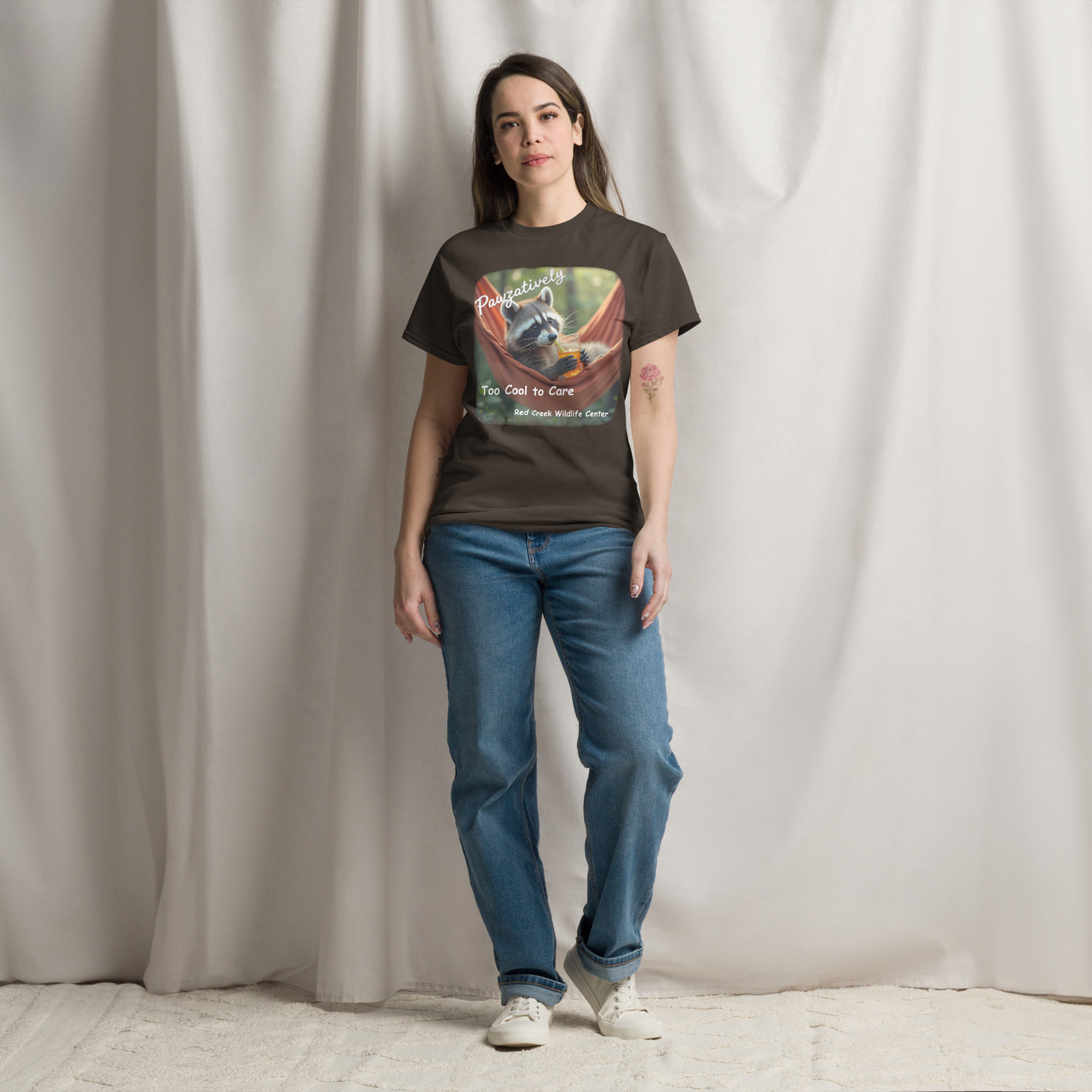 Featuring a laid-back raccoon who clearly has life figured out, this shirt is all about relaxed confidence and quiet humor. The bold PAWZATIVELY Too Cool to Care design makes it an easy favorite for anyone who appreciates wildlife with attitude.