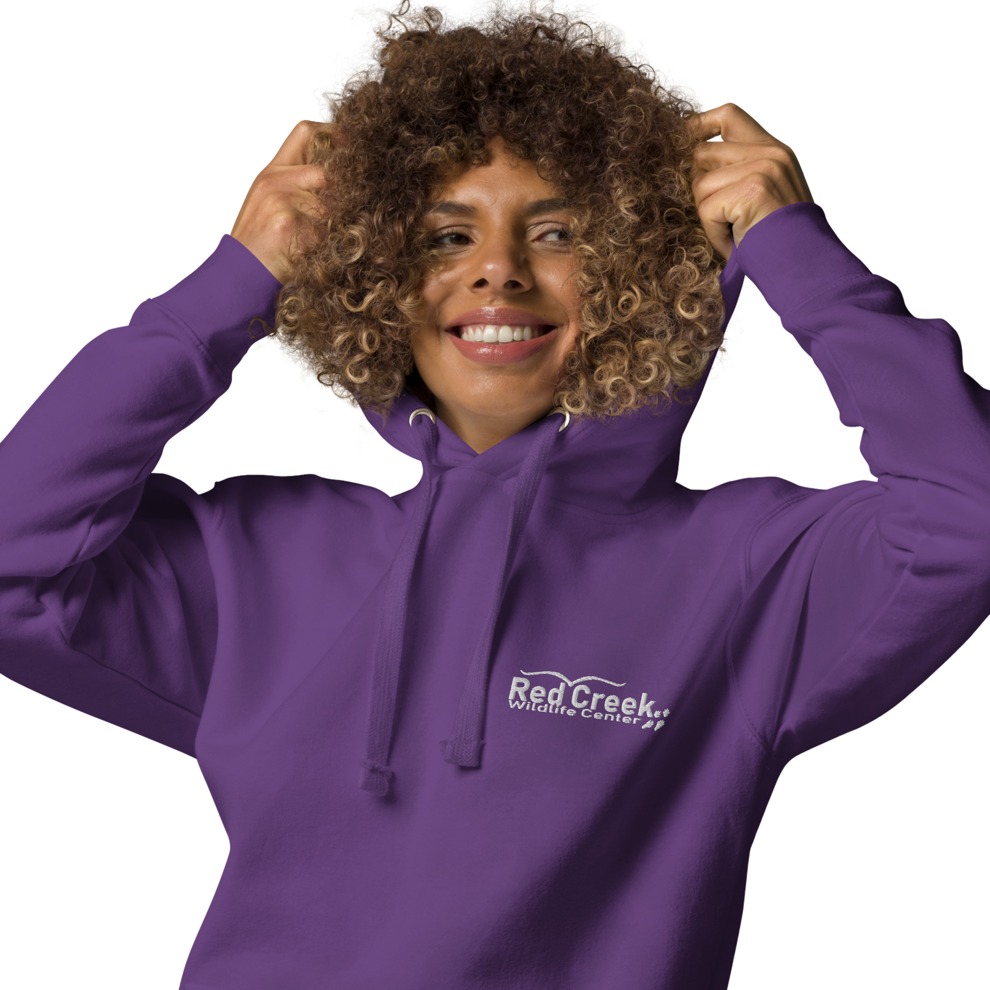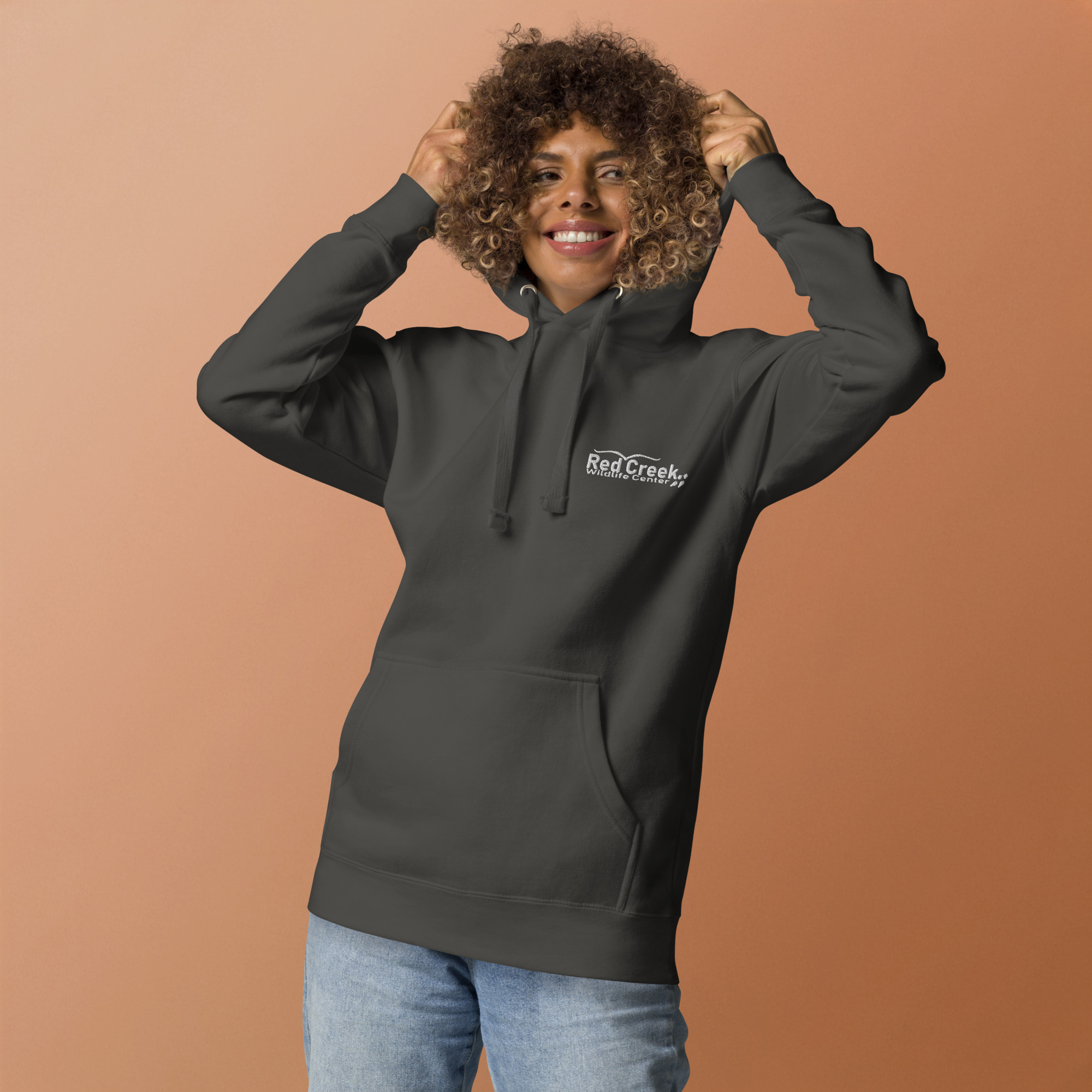 This pullover hoodie features the Red Creek Wildlife Center logo embroidered on the front, paired with our footprint design on the back—a quiet reminder that caring for wildlife is a shared journey between people and animals.