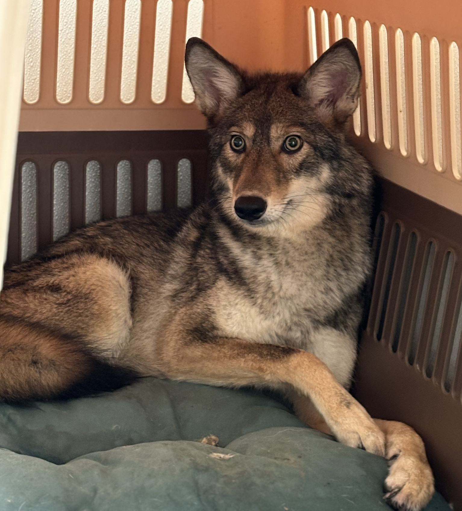 Previous Image Next Image 4 One month before release, lounging in his crate while staff cleaned his room inside the clinic building